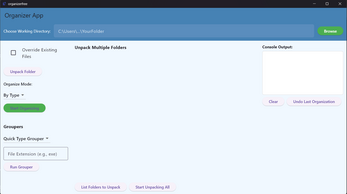 ORGANIZER APP.exe— no install needed - Choose your working directory